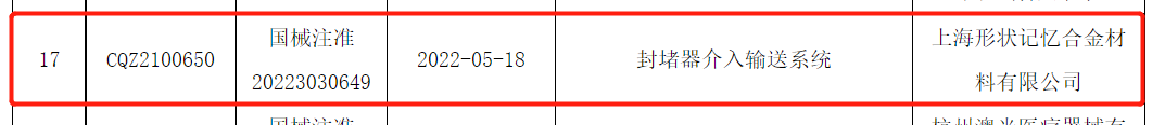 近日,上海形状记忆合金材料有限公司(乐普心泰医疗科技(上海)股份有限公司旗下全资子公司,简称“上海形状记忆”)自主研发的“Gruiser™封堵器介入输送系统”正式获得了国家药品监督管理局三类医疗器械注册证(国械注准20223030649),该创新产品用于输送我公司各类可降解封堵器至病变部位进行释放,将为先心领域可降解时代的到来提供强大助力。