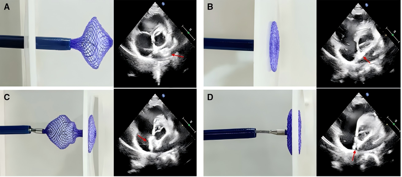 针对这些难题,阜外团队研发的新型生物可降解封堵器做出了多项创新。在材料上,团队采用PDO和PLA复合材料设计,以PDO作为骨架确保植入初期的刚性与弹性,同时以降解较慢的PLA作为阻流膜,在PDO降解后继续促进内皮化,从而防止过早再通并降低长期风险。在结构上,为解决可降解封堵器材料弹性不足的问题,封堵器加入了成型环和成型线的设计,以强化其双盘形态,提供足够支撑并防止移位。此外,由于该封堵器在X射线下不可见,术中需采用超声引导来实现可视化,帮助术者充分评估释放位置与形态。可降解封堵器的操作存在学习曲线,需要有金属封堵器操作的先前经验。通过适当且充分的培训,操作者定能克服学习曲线,达到良好的操作效果。