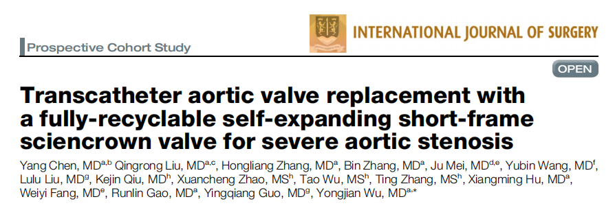 Chen Y, Liu QR, Zhang HL, et al. Transcatheter aortic valve replacement with a fully-recyclable self-expanding short-frame sciencrown valve for severe aortic stenosis[J]. International Journal of Surgery, 2026, 112:3338-3347.